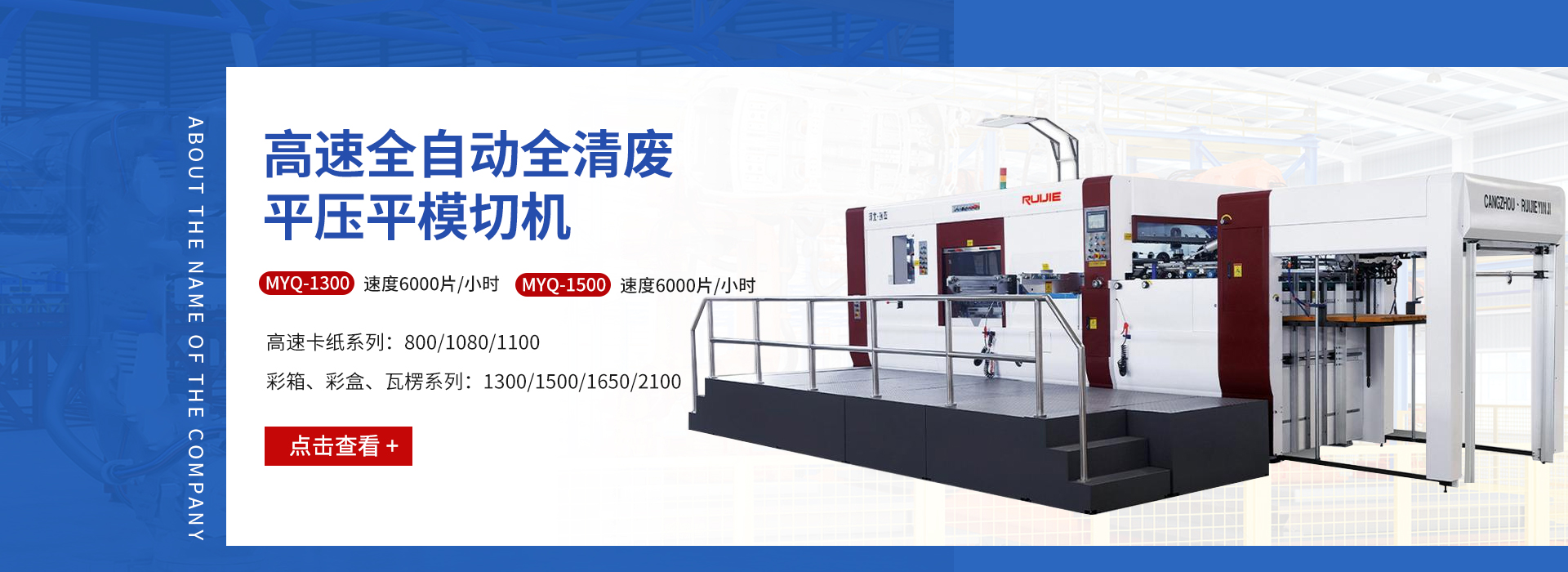 滄州瑞杰紙箱機(jī)械有限公司是一家集研發(fā),制造,銷售為一體的生產(chǎn)系列模切設(shè)備廠家。我們擁有現(xiàn)代化的機(jī)械加工設(shè)備,秉承“以質(zhì)量求生存,以科技促發(fā)展”的宗旨,先進(jìn)的模切技術(shù),給廣大客戶帶來更高的經(jīng)濟(jì)效益。 公司自創(chuàng)立以來,勵精圖治,銳意創(chuàng)新,產(chǎn)品規(guī)格逐漸完善,質(zhì)量不斷提升,市場持續(xù)擴(kuò)大,產(chǎn)品遍布全國并出口世界102個國家。多次被評為河北省質(zhì)量檢驗(yàn)合格企業(yè),產(chǎn)品質(zhì)量放心企業(yè)。率先通過ISO9001:2008國際質(zhì)量體系認(rèn)證、歐盟CE認(rèn)證,保證了產(chǎn)品質(zhì)量的標(biāo)準(zhǔn)性和穩(wěn)定性,確保更快速,便捷的為客戶提供高速率,低成本,自動化,高精度的印后加工設(shè)備。 瑞杰系列模切機(jī),以“瑞杰”“恒盛” 為注冊商標(biāo)。面對市場的瞬息萬變和客戶日益增長的需求,瑞杰人持續(xù)創(chuàng)新,以提高產(chǎn)品品質(zhì),完善服務(wù),博采眾長,精心設(shè)計,制造每一件產(chǎn)品,更加堅定從客戶需求,客戶利益出發(fā),成為客戶信賴的朋友。 Cangzhou Ruijie Carton Mac...